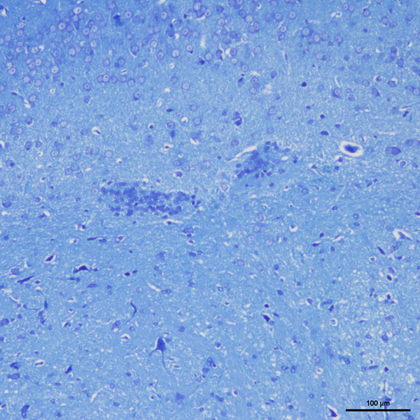 3、应该在显微镜下观察分色程度,使尼氏小体呈深色而背底基本无色为最佳。如分色不够,可以退回酒精再次分色。如分色过度,也可退回再染。